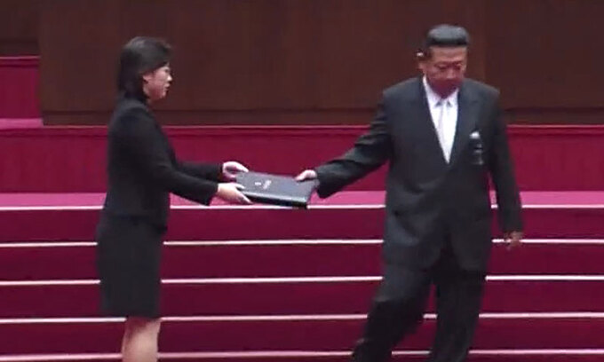 특히 이 여성이 가슴에 김일성·김정일 초상휘장을 달지 않은 채 공식활동에 나서고 있는 점이 눈에 띈다. 이 여성은 초상휘장 대신 은색 꽃 모양 브로치를 달고 있다.