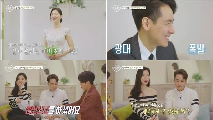 이날 두 사람은 스튜디오에 등장해 혼인신고 증명서를 공개했다. MC인 개그맨 유세윤에게 결혼식 사회를, 가수 존박에게 축가를 부탁했다. "방송에 나와서 맺어지는 걸 상상도 못 했다"며 "앞으로도 보답하는 마음으로 행복하게 잘 살겠다"고 약속했다.