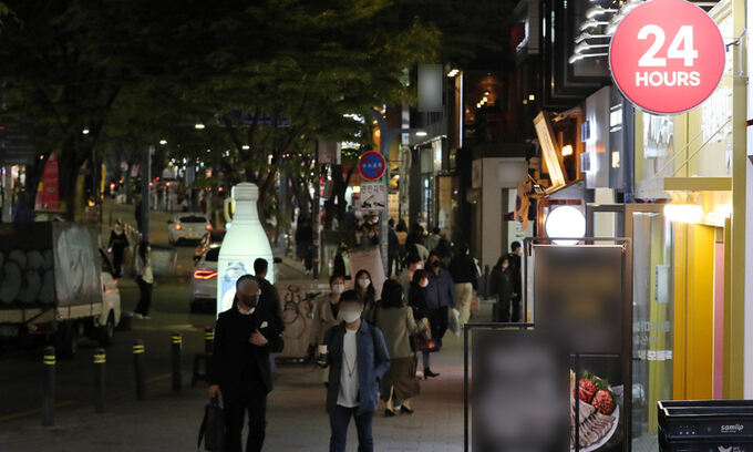 하지만 매출은 코로나19 이전에 비해 크게 줄었다. 박씨는 “저녁시간엔 테이블이 꽉 차서 손님들을 돌려보냈는데, 자정을 넘기니 손님이 뚝 끊겼다. 코로나19 이전에 비하면 3분의 1 수준”이라면서 “예전엔 평일에도 새벽 2∼3시까지 손님들로 북적였는데 이제 모임문화 자체가 바뀐 건가 싶다”고 말했다.