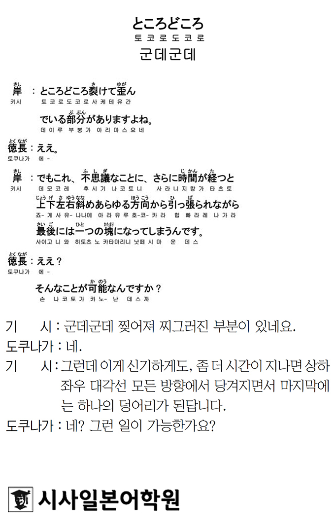 [시사일본어학원의 초단기 일본어 회화] 군데군데 입력 : 2022-04-22 18:45:51 수정 : 2022-04-22 18:45:50 구글 네이버 유튜브 Copyright ⓒ 세계일보. 무단 전재 및 재배포 금지 세계일보