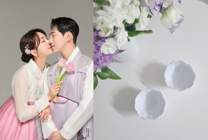 공개된 사진에는 꽃잎을 닮은 예쁜 그릇 두개의 모습이 담겨 있다. 특히 한영은 박군과의 결혼을 앞두고 혼수 준비에 박차를 가해 눈길을 끌었다,