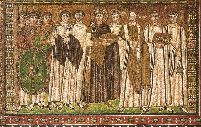 모자이크화 ‘유스티니아누스 황제의 황금접시 봉헌’.