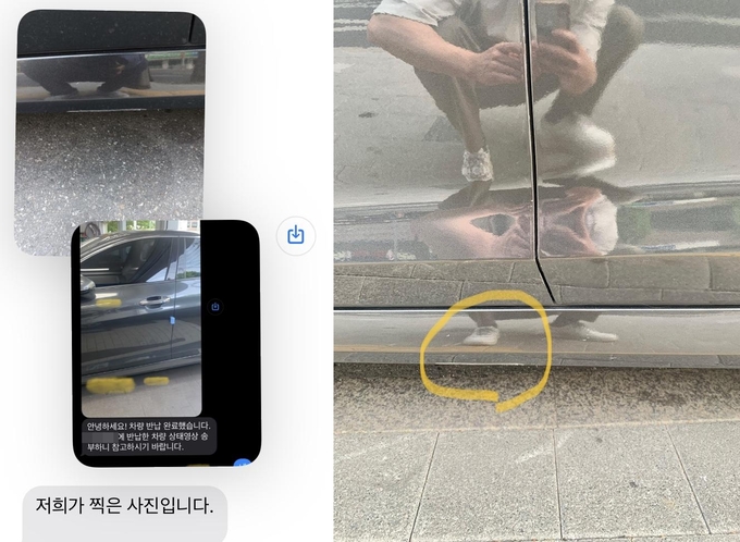 얼마 후 업체는 “저희가 찍었습니다”라는 문자 메시지와 함께 차량 하단에 긁힌 흠집을 담은 사진을 보냈다고 한다.
