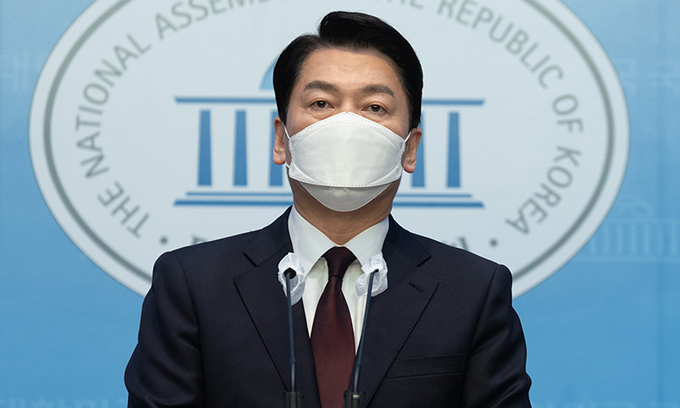 안철수 대통령직인수위원장이 8일 국회 소통관에서 경기 분당갑 국회의원 보궐선거 출마 선언 기자회견을 하기 위해 발언대로 향하고 있다. 연합뉴스