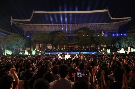 이날 공연은 윤 대통령이 취임한 지난 10일 시작된 청와대 개방 행사 '청와대, 국민 품으로'의 성공적인 마무리를 기념하기 위해 기획됐다.