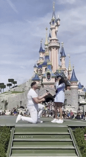 영상 속 커플로 보이는 남성은 디즈니랜드의 명소인 ‘잠자는 숲속의 공주’ 성이 보이는 무대 위에서 반지가 든 상자를 꺼내 연인에게 청혼했다.