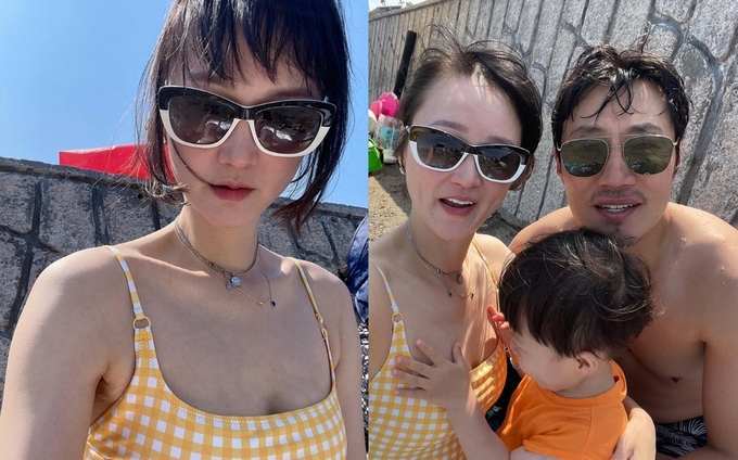 공개된 사진에는 남편인 배우 이희준, 아들과 함께 수영장을 찾은 이혜정의 모습이 담겨 있다. 특히 사진 속 이혜정은 갑작스러운 아들의 가슴 터치에 당황한 듯 놀란 표정을 고스란히 드러내 웃음을 자아냈다. 또 이혜정은 여름 분위기가 물씬 나는 노란색 수영복을 입고 모델로서 여전한 몸매와 미모를 자랑하기도 했다.