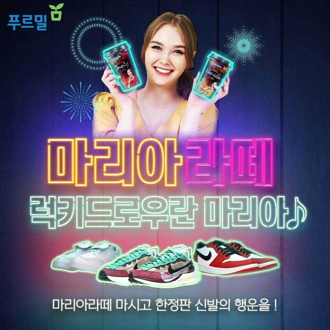유제품 전문기업 푸르밀이 참숯으로 직화 로스팅한 마리아라떼 제품 구매 고객을 대상으로 MZ세대(밀레니얼+Z세대)에게 폭발적인 인기를 끌고 있는 나이키 한정판 운동화를 증정한다고 10일 밝혔다.