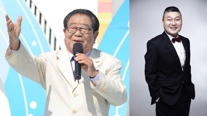 방송인 강호동(오른쪽 사진)이 향년 95세로 별세한 ‘국민 MC’ 송해(왼쪽 사진)의 광고를 이어 받는다.