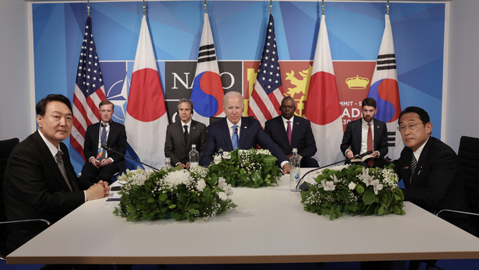 이번 만남을 미국이 주도했다는 점을 강조하는 것도 두드러진다. 요미우리신문은 “일본과 한국을 연결한 것은 미국 바이든 정권이었다”며 “조 바이든 미국 대통령은 지난달 양국을 방문했을 때 엄중한 안보환경을 고려해 관계개선을 촉구했다”고 밝혔다. 아사히 신문도 “북한의 핵·미사일 개발, 러시아의 우크라이나 침공, 중국의 군사적 팽창 등에 대응하기 위해 아시아의 동맹국인 일본, 한국의 결속을 중시해 관계개선을 강하게 요구하고 있다”고 보도했다. 미국의 이같은 태도에 따라 나토 정상회의에서 한·미·일정상회의가 성사됐다. 하지만 한·일정상회담은 보류됐고, 미국의 체면을 세워주는 차원에서 짧은 대화를 나누는 것으로 윤 대통령과 기시다 총리의 만남이 이뤄졌다는 게 일본 언론의 분석이다.