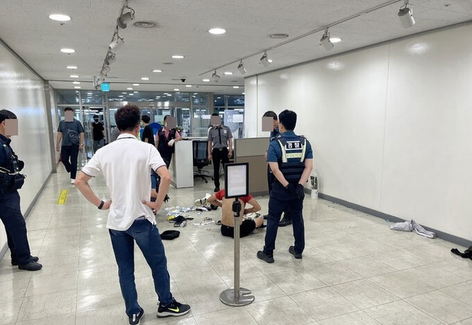 만취한 채 소주병 던지고, 웃통 벗고… 포항시청서 난동 부린 60대 남성