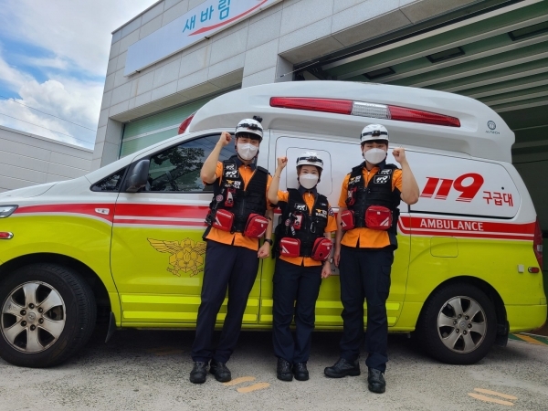 당시 출동한 구미소방서 옥계 119안전센터 구급대원 3명(소방교 안성훈·신대희, 소방사 안혜진)은 A씨의 상태를 확인한 뒤 대구의 한 산부인과로 출발했다.