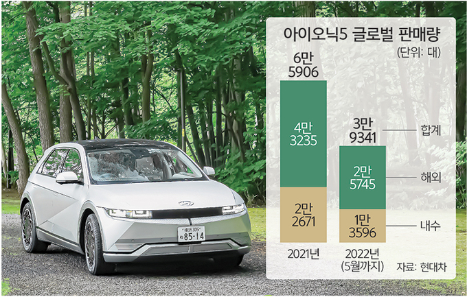 아이오닉5는 현대차그룹의 전기차 전용 플랫폼 E-GMP를 기반으로 개발된 최초의 전용 전기차다. 다양한 목적을 위해 설계된 실내 공간과 역동적인 주행 성능 등을 갖췄다. 일본 연비 측정 방식인 WLTC 기준 1회 충전 시 최대 618㎞를 주행할 수 있다. 높은 상품성을 인정받아 지난 4월 ‘2022 월드카 어워즈’에서 ‘세계 올해의 자동차’ 상을 받기도 했다.