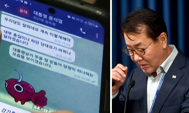 전날 한 사진기자 카메라에 포착된 권성동 직무대행 문자메시지를 보면, 윤 대통령은 "우리 당도 잘하네요. 계속 이렇게 해야"에 이어 "내부 총질이나 하던 당대표가 바뀌니 달라졌습니다"라고 보냈다.