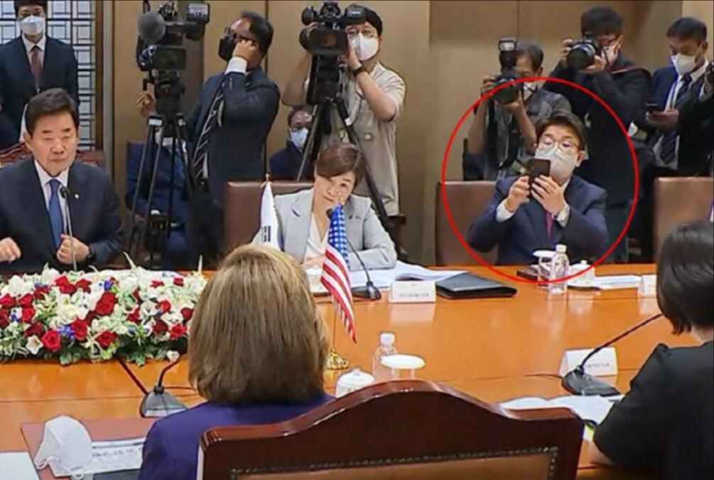 지난 4일 오전 국회에서는 펠로시 의장과 김진표 국회의장의 회담이 열렸다. 이 자리에는 여야 원내대표와 국회 외교통일위원회 소속 의원들이 참석했다.