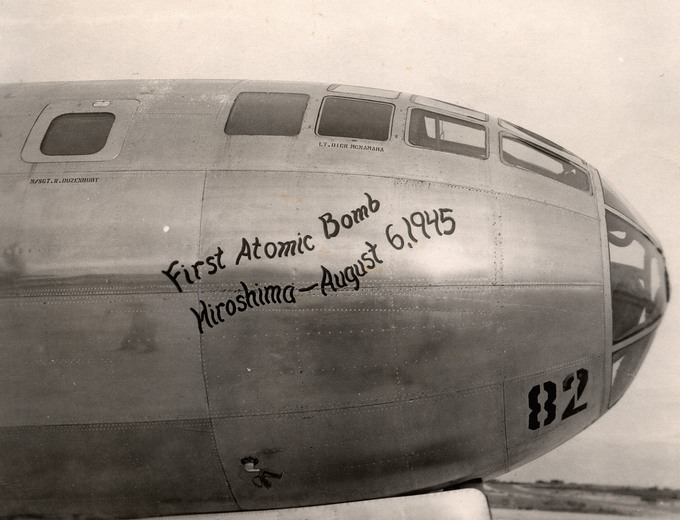 ‘첫 핵폭탄’ 적힌 히로시마 폭격기