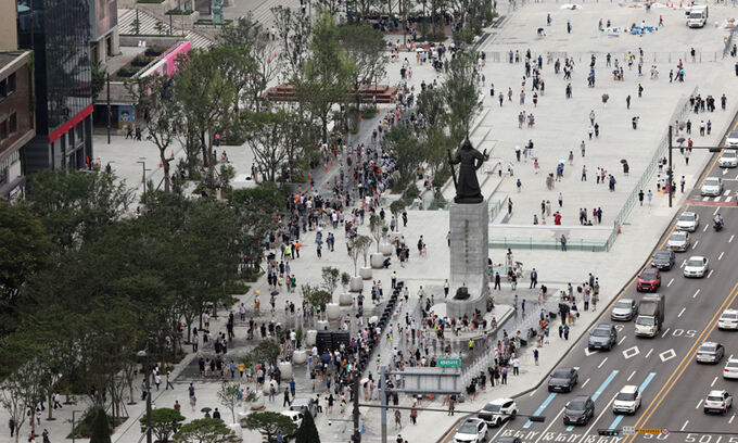 시민쉼터로 돌아온 광화문광장… “탁트인 전경·분수 시원해”