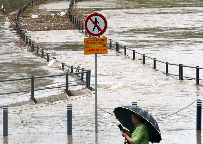 충북 청주에서는 시내를 관통하는 무심천의 물이 불어나면서 이날 오전 3시 40분을 기해 하상도로 전 구간의 차량 통행을 막고 있다.