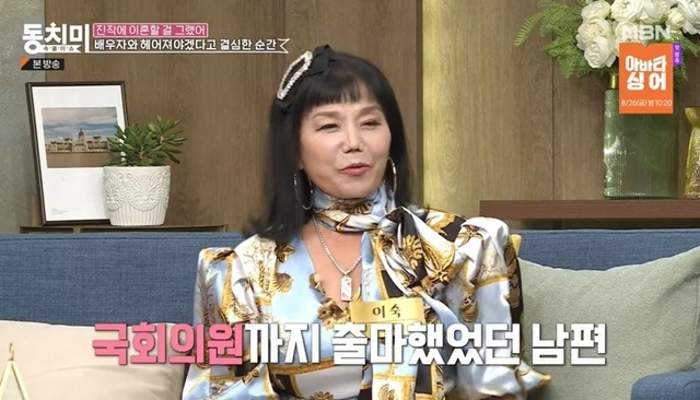 이날 이숙은 “저는 이혼 케이스는 아니고 사별 케이스다. 거의 30년이 됐다”며 “제가 어릴 때부터 웅변도 하고 똘똘하다고 해서 정치에 꿈을 갖고 커서 뭐 될래? 물어보면 정치가가 될 거라고 했다. 우연하게 연예인이 되고 남편을 정치하는 사람을 만났다”고 말했다.