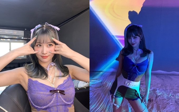 공개된 사진에는 앨범 콘셉트 의상을 입은 모모의 모습이 담겨 있다. 특히 사진 속 모모는 연보라색의 브라톱과 딱 붙는 초미니 팬츠를 입고 다리에는 카터펠트를 착용하고 있어 눈길을 끌었다. 또 모모는 브라톱 안에 스킨색 상의를 겹쳐 입어 속옷만 착용한 것 같은 착시를 유발하기도 했다.