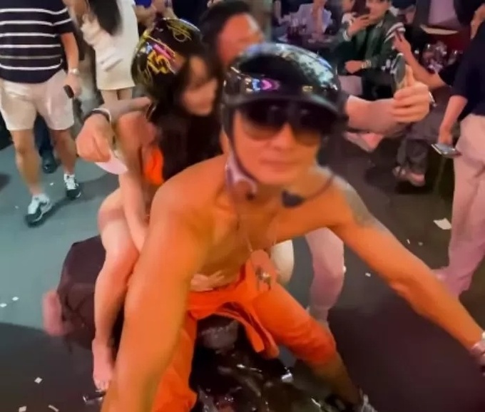영상 속 남성은 주황색 바지만 입고 상의를 탈의한 상태였고, 뒷자리에 앉은 임씨 역시 주황색 비키니 수영복을 입고 있었다.