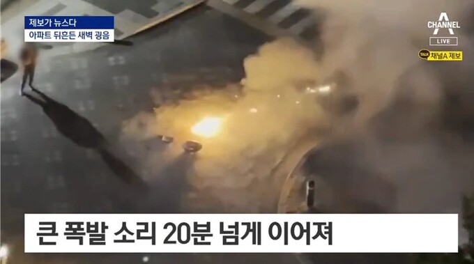 주민들에 따르면 이 상황은 20분도 넘게 이어졌다. 한 주민 A씨는 “총소리처럼 엄청 큰 소리가 났다”며 “우리 집 애들도 놀라서 막 울고 그랬다”고 채널A에 전했다.