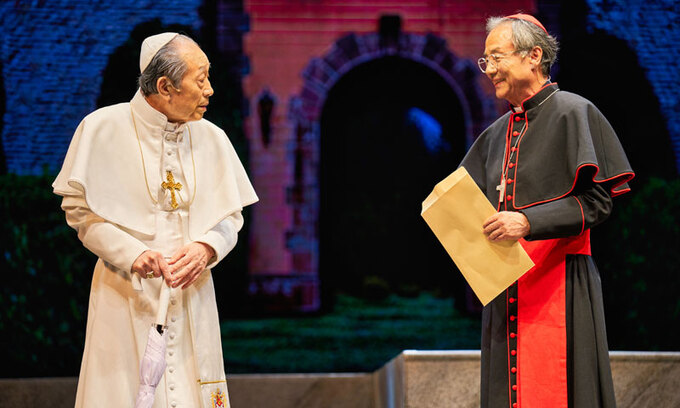 신구와 정동환 못지않게 쟁쟁한 배우들인 서인석·서상원(교황 베네딕토 16세)·남명렬(프란치스코 교황)이 번갈아 연기한다. 정수영(브리지타 수녀)·정재은(소피아 수녀)·조휘(젊은 베르고글리오)도 출연한다. 10월23일까지 서울 서초구 한전아트센터.