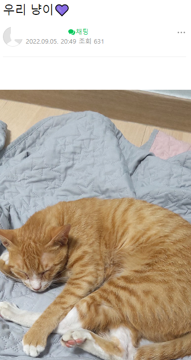글을 쓴 A씨는 “길고양이였지만 너무나도 예쁘고 착하고 사람 손을 안 무서워했다”며 “석달 동안 좋았다”고 적었다.