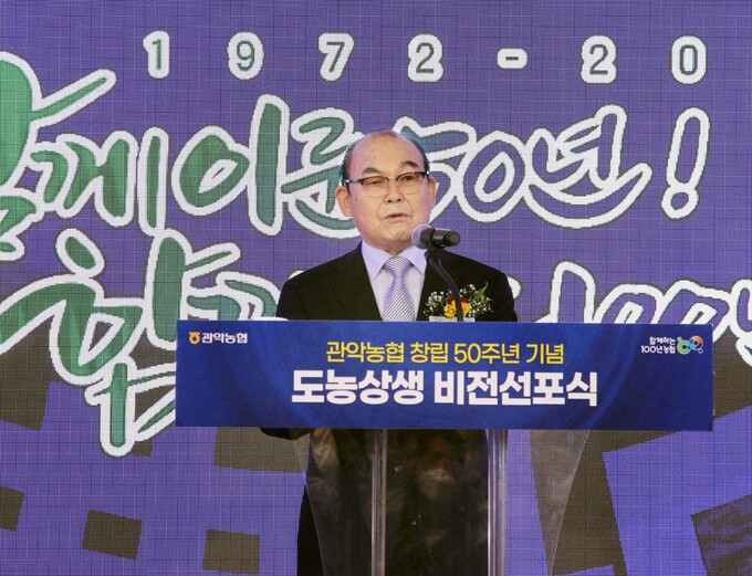 관악농협(조합장 박준식)은 20일 오후 관악농협 6층 대강당에서 창립50주년 기념 ‘도농상생 비전선포식’을 개최했다.