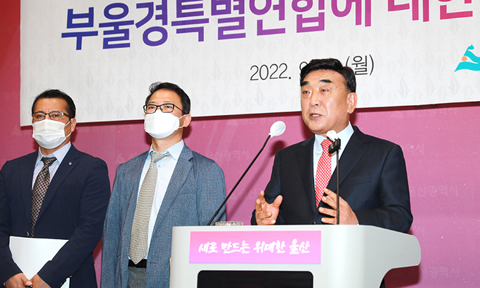 울산도 지난달 26일 용역 결과를 발표하며 부산으로의 ‘빨대효과’가 우려된다며 “부울경 특별연합 참여를 잠정 중단한다”고 밝혔다. 울산시는 중앙정부의 적극적 사업 지원이 선행되고, 권한 확대와 재정 지원이 제도적으로 담보될 때까지 중단한다고 했다. ‘잠정중단’이라는 표현을 사용했지만, 김두겸 시장은 “특별법 제정이나 권한 확대, 재정 지원이 이뤄지기 어려우므로 아예 참여하지 않겠다는 것”이라고 확인했다.
