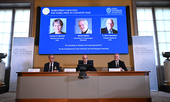 2022년 노벨 화학상 수상자로 캐럴린 R. 버토지(미국), 모르텐 멜달(덴마크), K. 배리 샤플리스(미국) 등 3명이 5일(현지시간) 선정됐다.