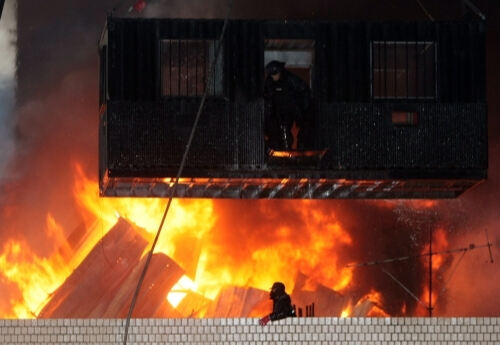 지난 2009년 1월 20일 서울 한강로2가 재개발지역의 남일당 건물 옥상의 사고 현장. 연합뉴스