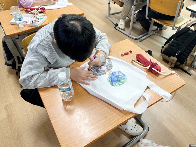 특히, 플리츠마마의 ‘페트병 나노백 DIY 키트’로 나노 플리츠백을 직접 만들고 학생들이 직접 환경 지킴 다짐을 글과 그림으로 표현해 보는 시간을 통해 자원순환의 중요성을 알렸다.