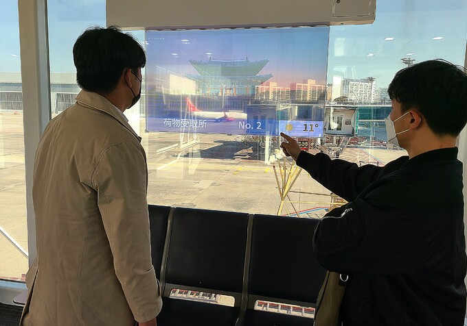 한국공항공사 서울지역본부는 24일 김포공항 국제선 탑승교에 투명 디스플레이를 설치해 정보를 제공하는 ‘스마트 안내시스템’ 운영에 들어갔다.