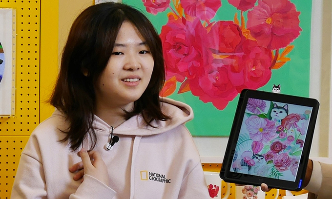 여러 작품 중 활짝 핀 꽃송이 사이로 고개를 내민 고양이가 그려진 작품이 유독 눈길을 끌었다. 작품의 주인공은 열여덟 살 김지우양. 그가 발달장애 진단을 받은 것은 생후 18개월 무렵이다. 김양이 작가로 데뷔하기까지 보낸 세월은 그의 작품처럼 마냥 밝지만은 않았다.