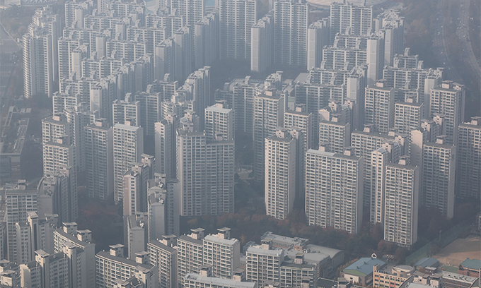 정부가 부동산 규제지역 추가 해제와 주택담보대출 15억원 초과 주택담보대출 허용 등 부동산 대책을 발표한 10일 서울 송파구 롯데월드타워 서울스카이에서 잠실 일대 아파트 단지가 보이고 있다. 남정탁 기자