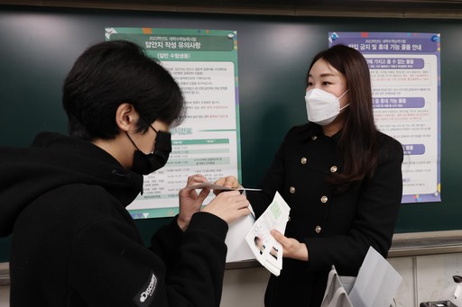 담임 선생님이 각 학생의 이름을 부르며 수험표를 나눠주자 떠들썩하던 교실은 이내 숙연해졌다. 수험표를 받아 든 학생들은 각자 배정된 고사장을 확인하고 위치를 파악하느라 분주했다.