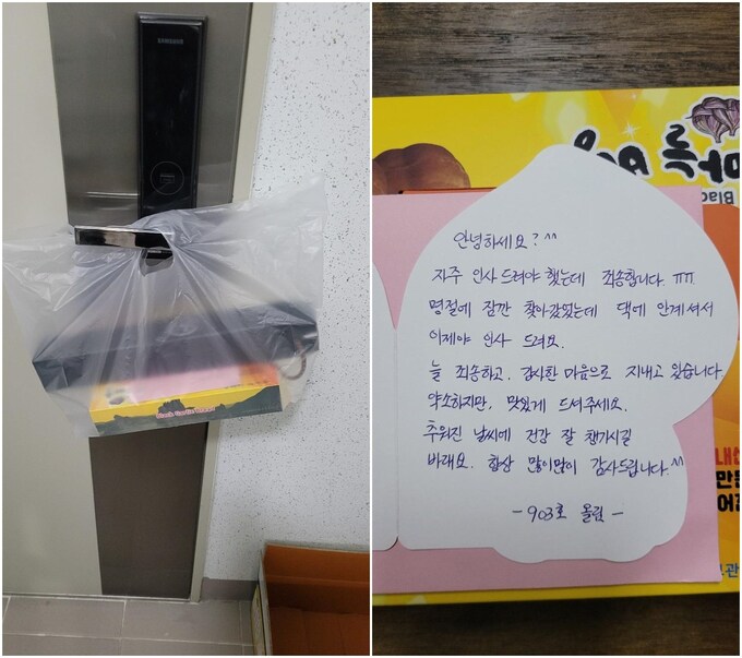 “층간소음으로 늘 죄송”…윗집 이웃이 준 ‘문고리 선물’