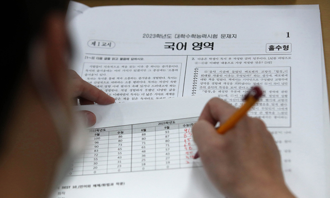 2023학년도 수능 국어 영역은 ‘불국어’라 불린 지난해 수능보다 쉬웠다는 평가를 받는다. 클라이버의 기초대사량을 다룬 과학 지문 14∼17번이 최고난도 문항으로 꼽혔다. 사회 영역인 최소제곱법과 결합한 복합지문으로 소재가 까다로운 데다 지문도 길어 수험생들이 시간 배분에 어려움을 겪었을 것으로 보인다.