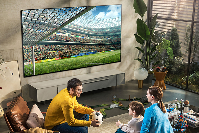 또 TV의 모든 스피커와 사운드바가 동시에 풍성한 사운드를 만들어내는 ‘Q 심포니’를 더하면 경기장 한가운데 있는 것처럼 풍성하고 입체적인 사운드로 업그레이드되며, 주위의 소음에도 영상 속 대화 소리만 추출해 증폭해주는 ‘액티브 보이스’는 소음 속에서도 리포터의 해설이나 승리를 거둔 선수의 벅찬 소감까지 또렷하게 전달한다. Neo QLED 4K 제품은 최근 98형 신제품이 출시됐다.
