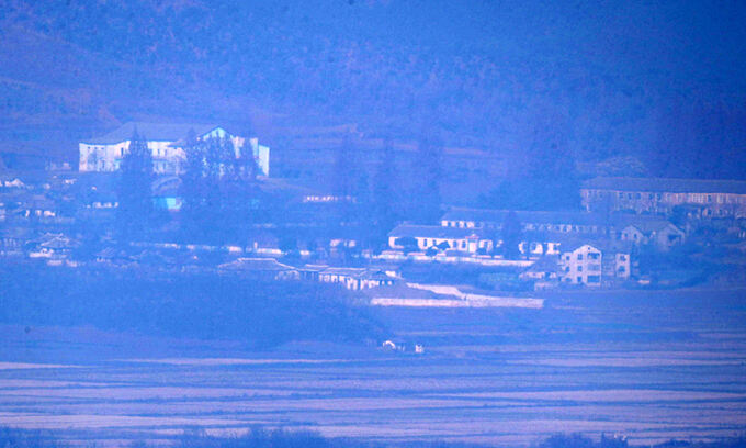 지난 18일 경기도 파주시 오두산 통일전망대에서 바라본 북한 황해북도 개풍군 일대가 흐릿하다. 연합뉴스