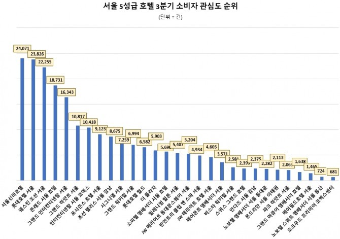 분석 결과 3분기 온라인 관심도 1위는 서울신라호텔로 총 2만4,071건을 기록했다.