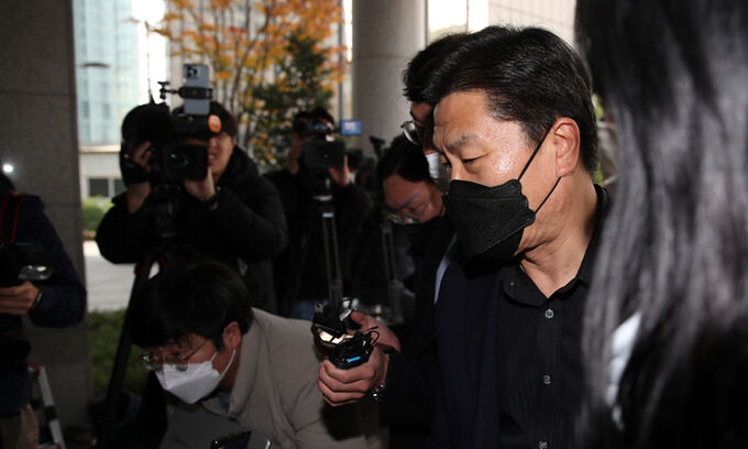 지난 24일 이임재 전 용산경찰서장이 2차 소환조사를 받기 위해 서울 마포구 이태원 사고 특별수사본부로 출석하고 있다.
