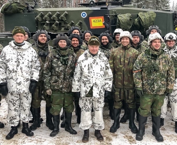 30일(현지시간) 사울리 니니스퇴 핀란드 대통령의 사회관계망서비스(SNS)를 보면 그가 전날 핀란드와 러시아의 접경지역인 카리알라에서 벌어진 육군의 군사훈련을 참관하는 사진이 게재돼 있다. 보통 정치인이 군부대를 방문하는 경우 양복 위에 군용 야전상의나 점퍼만 착용하는 것과 달리 니니스퇴 대통령은 전투복을 완전히 갖춰 입고 전투화까지 신은 모습이다. 핀란드군은 겨울에 설원에서 전투를 벌이는 상황을 가정해 흰색의 방한 전투복이 있다.
