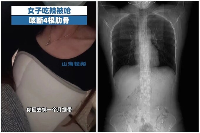 중국에서 한 여성이 매운 음식을 먹고 기침을 심하게 하면서 갈비뼈 4대가 부러지는 사고가 발생했다.
