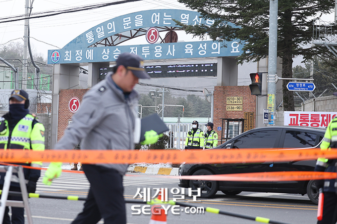 [포토] BTS 진 입대현장, 연천 경찰 비상 입력 : 2022-12-13 11:01:29 수정 : 2022-12-13 11:01:29 한윤종 기자 hyj0709@segye.com 구글 네이버 유튜브 방탄소년단(BTS) 진이 13일 오후 경기도 연천 육군 5사단 신병교육대로 입대를 앞둔 가운데 현장 주변에 경찰 기동대 등 300명이 배치돼 질서유지와 교통관리 등을 하고 있다. 한윤종 기자 Copyright ⓒ 세계일보. 무단 전재 및 재배포 금지 Cube 한윤종