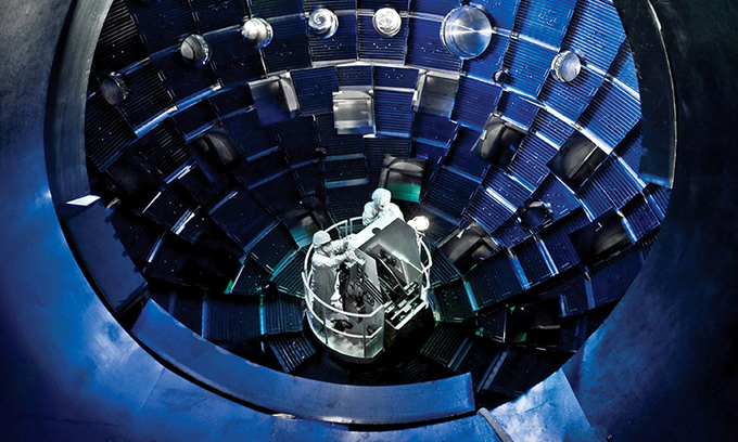 설비 점검하는 美 연구팀 미국 캘리포니아주 리버모어에 설치된 ‘로런스 리버모어 국립연구소’(LLNL)의 핵융합 연구 시설 ‘국립점화시설’(NIF) 연구팀이 설비를 점검하고 있다. 미 정부는 13일 NIF에 투입한 에너지보다 더 많은 에너지를 생산하는 핵융합 ‘점화’에 성공했다고 밝혔다.