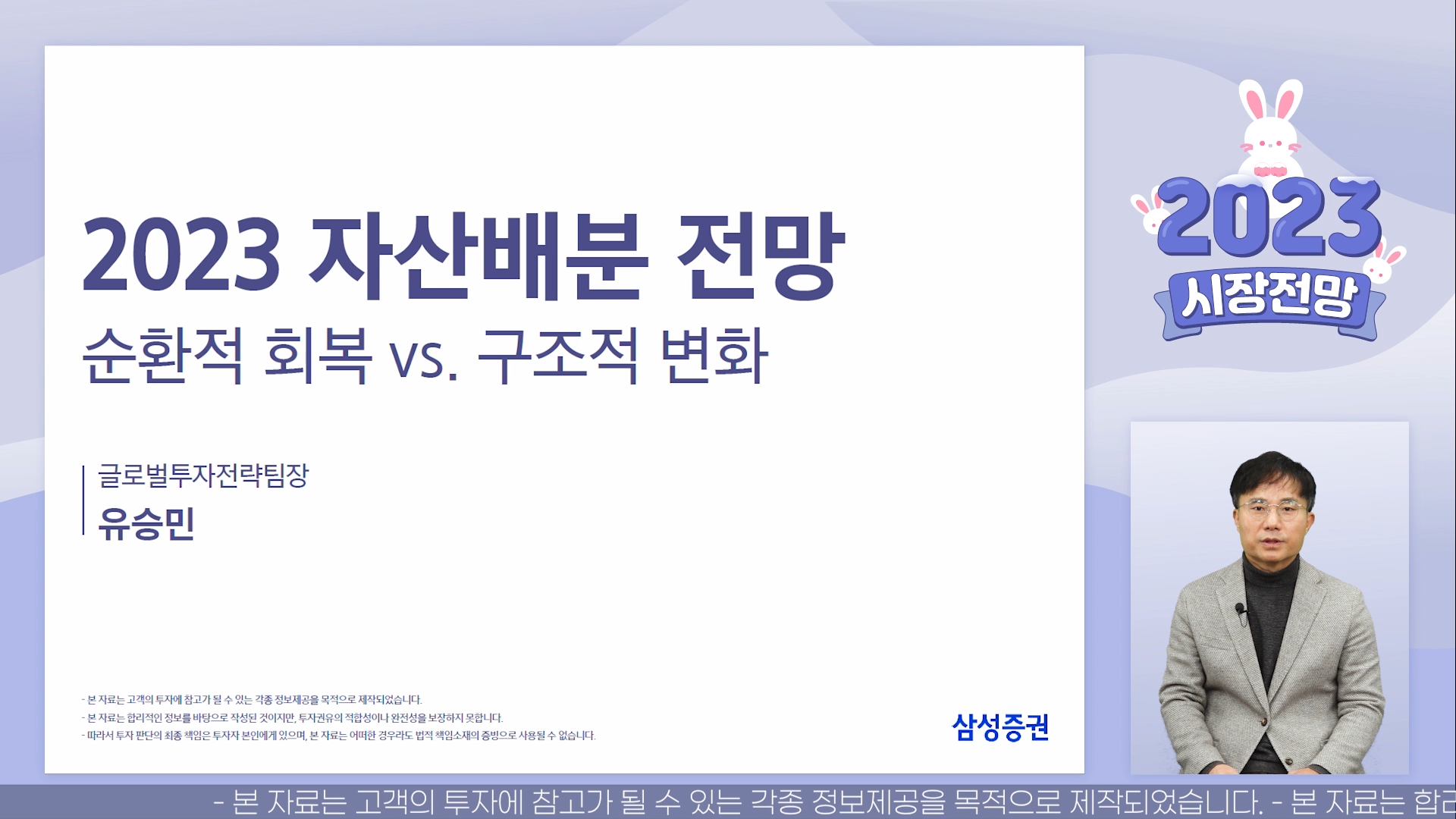삼성증권은 공식 유투브 채널을 통해 ‘2023년 시장 전망’ 영상을 시리즈로 제공하고 있다고 15일 밝혔다.