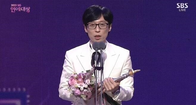 유재석은 지난 17일 저녁부터 18일 새벽까지 서울 마포구 상암동 SBS 프리즘타워에서 열린 ‘2022 SBS 연예대상’에서 ‘런닝맨’으로 대상을 수상했다.