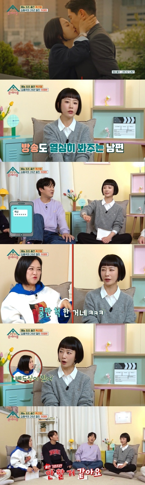 곽선영은 "남편이 오히려 모니터를 열심히 해주는 편"이라며 "촬영 끝나고 들어가는 길에 '옥상ㅋㅋㅋㅋㅋㅋ'라고 카톡이 와있더라"고 전했다. 이에 김숙은 "쿨한 척한 것"이라고 해 웃음을 자아냈다.